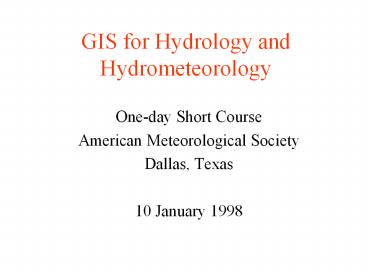 GIS for Hydrology and Hydrometeorology PowerPoint PPT Presentation