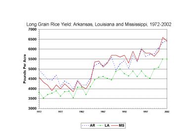 Title: Long Grain Rice Yield: Arkansas, Louisiana and Mississippi, 1972-2002