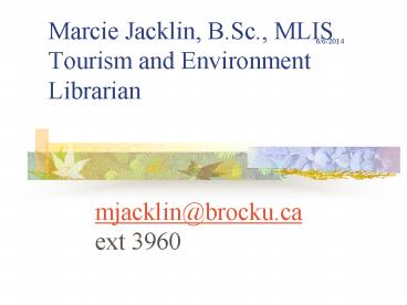Title: Marcie Jacklin, B.Sc., MLIS Tourism and Environment Librarian