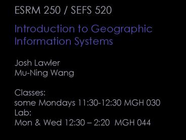 1ESRM 250 / SEFS 520 Introduction to Geographic