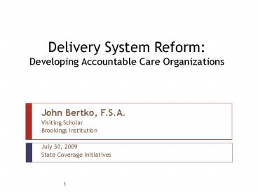 <Notice: Removed> Delivery System Reform: Developing Accountable Care Organizations PowerPoint PPT Presentation