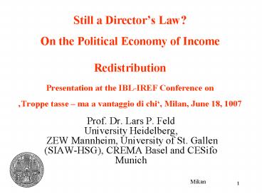 1Still a Directors Law?On the Political Economy