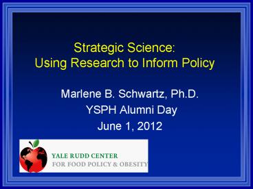 Strategic Science: Using Research to Inform Policy Marlene B. Schwartz, Ph.D. YSPH Alumni Day June 1, 2012 Rudd Center for Food Policy and Obesity Our mission is to ... – PowerPoint PPT presentation