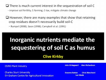 soil C as humus Clive Kirkby