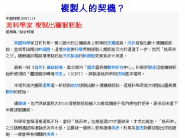 Producing primate embryonic stem cells by somatic cell nuclear transfer PowerPoint PPT Presentation
