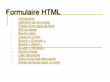 <Notice: Removed> Formulaire HTML PowerPoint PPT Presentation