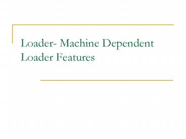 Loader- Machine Dependent Loader Features PowerPoint PPT Presentation