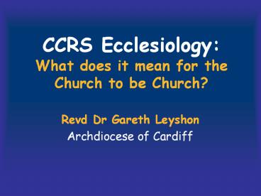 CCRS Ecclesiology: What does it mean for the Church to be Church? PowerPoint PPT Presentation