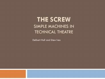 <Notice: Removed> The screw Simple machines in technical theatre PowerPoint PPT Presentation