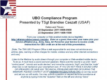 <Notice: Removed> UBO Compliance Program Presented by TSgt Brandise Caszatt (USAF) PowerPoint PPT Presentation