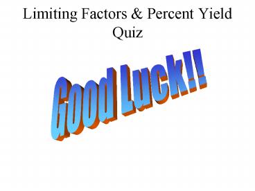 determine limiting reactant. - Use Limiting Reactant to solve for amount or