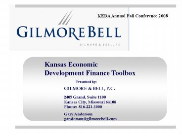 <Notice: Removed> Kansas Economic Development Finance Toolbox PowerPoint PPT Presentation