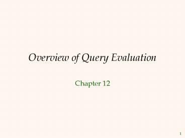 algorithms for each relational operator. - A query is evaluated by converting it to a tree