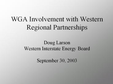 Title: WGA Involvement with Western Regional Partnerships Doug Larson Western Interstate Energy Board September 30, 2003