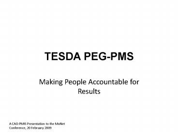 <Notice: Removed> TESDA PEG-PMS PowerPoint PPT Presentation