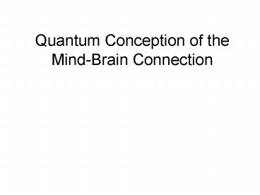 Title: Quantum Conception of the Mind-Brain Connection