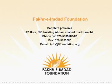 - Fakhr -e-Imdad Foundation is a non-governmental,