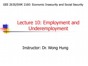 GEE 263S/SWK 2160 Economic Insecurity and Social