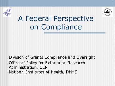 Title: A Federal Perspective on Compliance