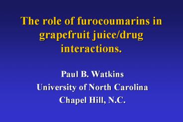 Title: The role of furocoumarins in grapefruit juice/drug interactions.