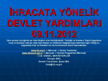 <Notice: Removed> IHRACATA Y PowerPoint PPT Presentation