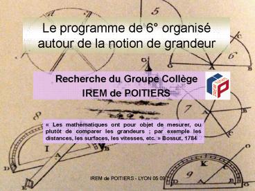 Genève. Rééd. A. Blanchard, Paris 1975. - PRESSIAT A. Grandeurs et mesures.IUFM .Equipe