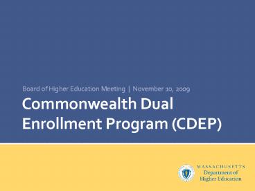 <Notice: Removed> Commonwealth Dual Enrollment Program (CDEP) PowerPoint PPT Presentation