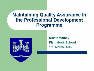<Notice: Removed> Maintaining Quality Assurance in the Professional Development Programme PowerPoint PPT Presentation
