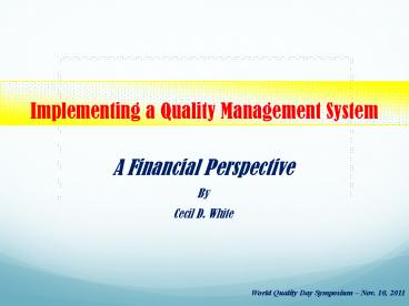 <Notice: Removed> Implementing a Quality Management System PowerPoint PPT Presentation