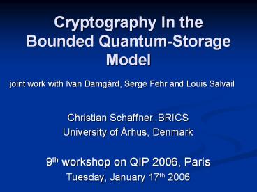 1Cryptography In theBounded Quantum-Storage Model