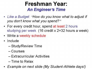 Freshman Year: An Engineer PowerPoint PPT Presentation