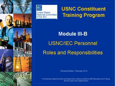 the IEC and the USNC/IEC. - The topics that follow are presented in summary