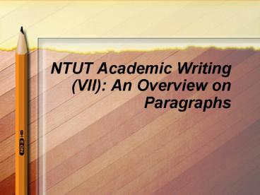 <Notice: Removed> NTUT Academic Writing (VII): An Overview on Paragraphs PowerPoint PPT Presentation