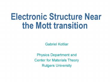 <Notice: Removed> Electronic Structure Near the Mott transition PowerPoint PPT Presentation