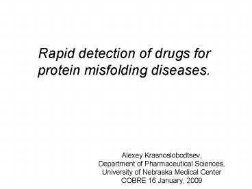 <Notice: Removed> Rapid detection of drugs for protein misfolding diseases. PowerPoint PPT Presentation