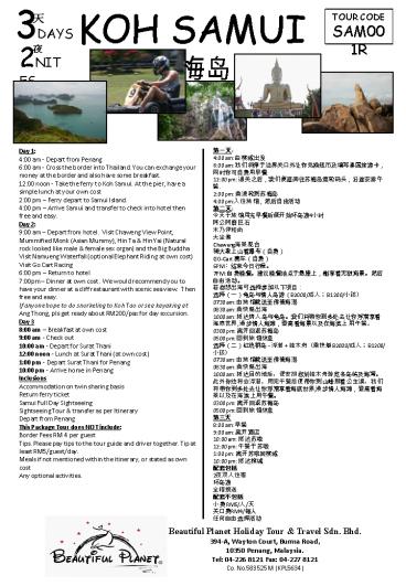 Island. 400 pm Arrive Samui and transfer to