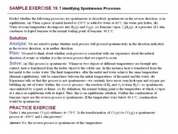 Title: SAMPLE EXERCISE 19.1 Identifying Spontaneous Processes