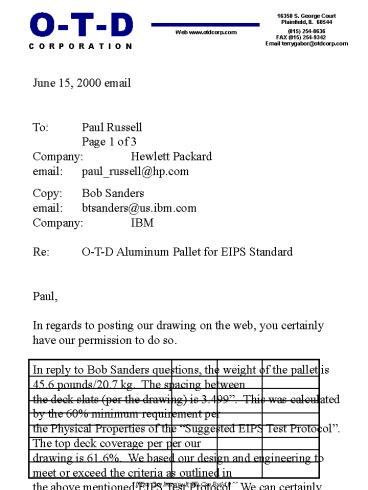 3 O-T-D Aluminum Pallet for EIPS Standard The