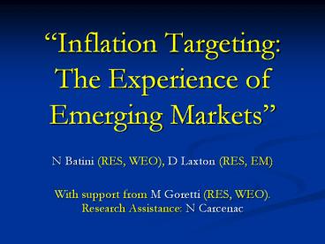 - N Batini (RES, WEO), D Laxton (RES, EM)