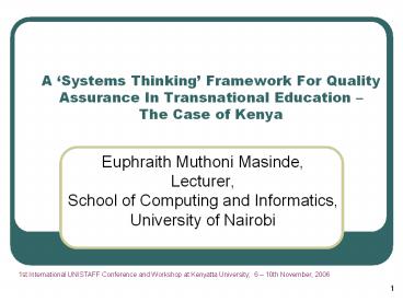Assurance In Transnational Education The Case