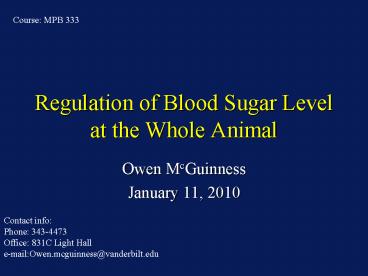 Title: Regulation of Blood Sugar Level at the Whole Animal