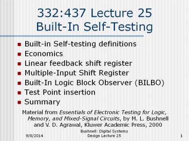 <Notice: Removed> Built-in Self-testing definitions PowerPoint PPT Presentation