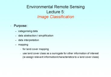 <Notice: Removed> Environmental Remote Sensing Lecture 5: Image Classification PowerPoint PPT Presentation