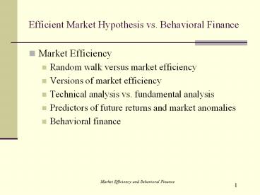 1Efficient Market Hypothesis vs. Behavioral Finance