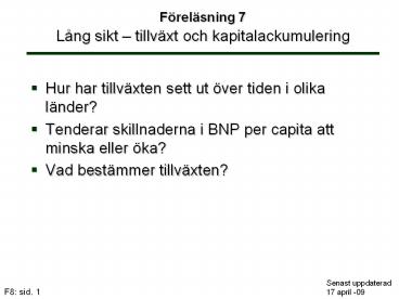 oss att svara på frågor som - Vad bestämmer (den långsiktiga) tillväxten?