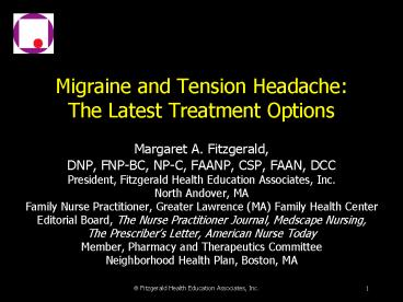 Title: Migraine and Tension Headache: The Latest Treatment Options