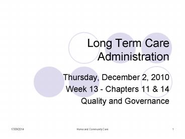 Title: Long Term Care Administration