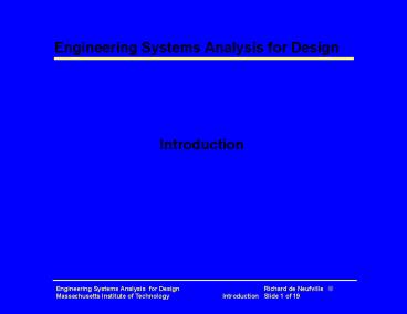 <Notice: Removed> Engineering Systems Analysis for Design PowerPoint PPT Presentation