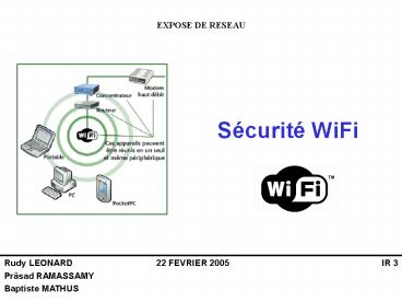 1 Sécurité WiFi EXPOSE DE RESEAU Rudy LEONARD Prâsad RAMASSAMY Baptiste MATHUS 22 FEVRIER 2005 IR 3 2 SOMMAIRE I. Wired Equivalent Privacy II. WPA Authentification III. WPA-Chiffrement IV. Démonstration 3