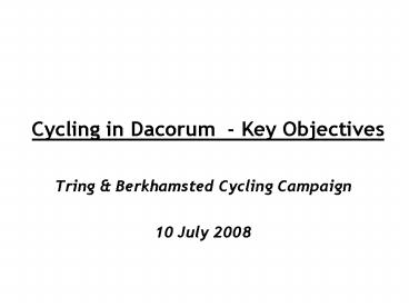 <Notice: Removed> Cycling in Dacorum - Key Objectives PowerPoint PPT Presentation